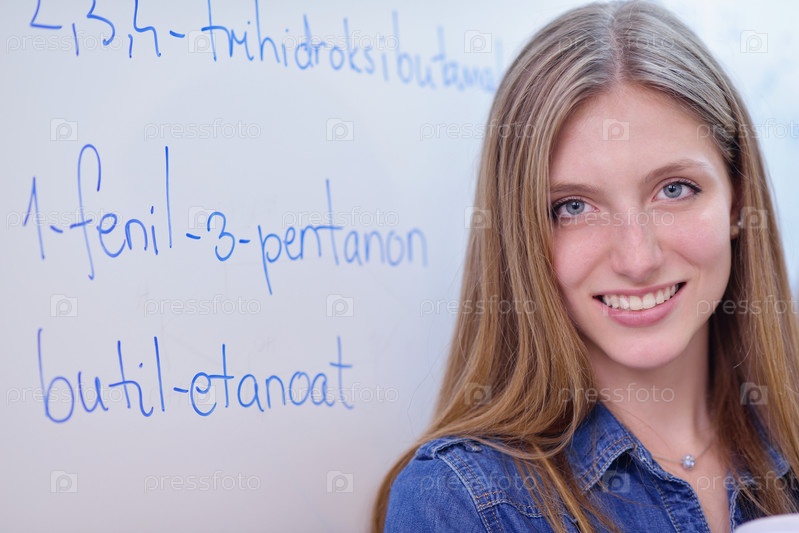 Студентка в классе химии