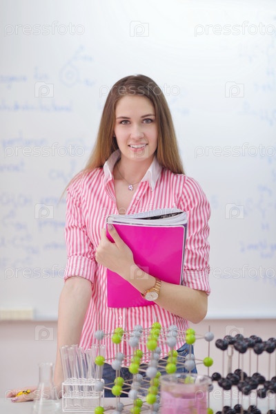 Студентка в классе химии