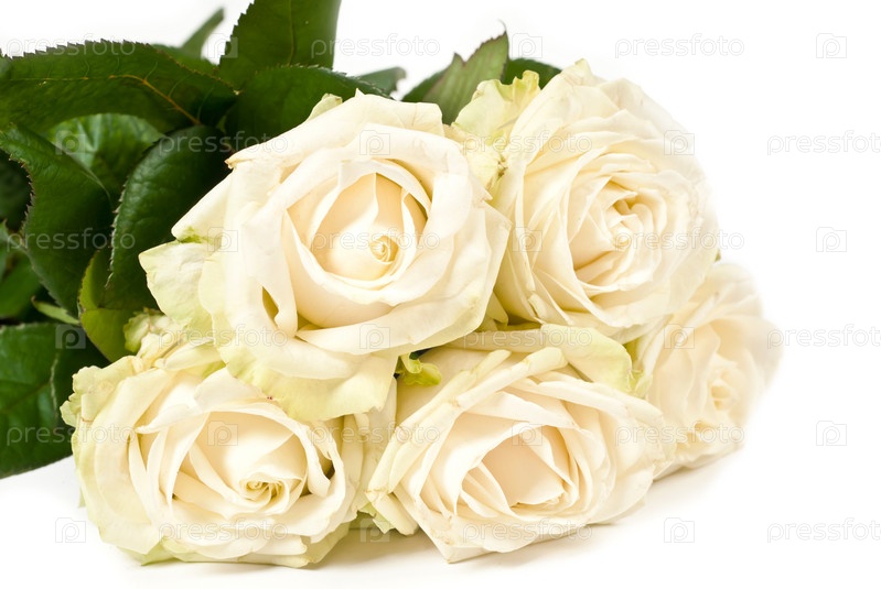 Букет белых роз на белом фоне