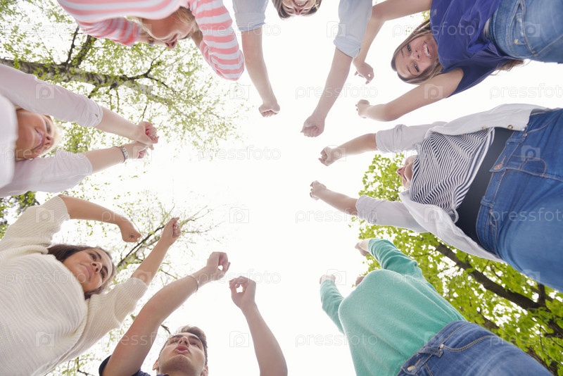 Группа веселых друзей в парке