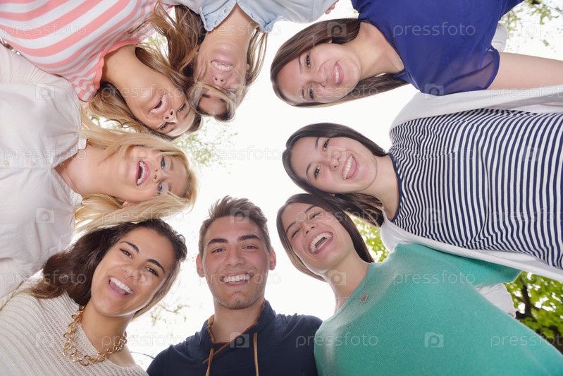 Группа веселых друзей в парке