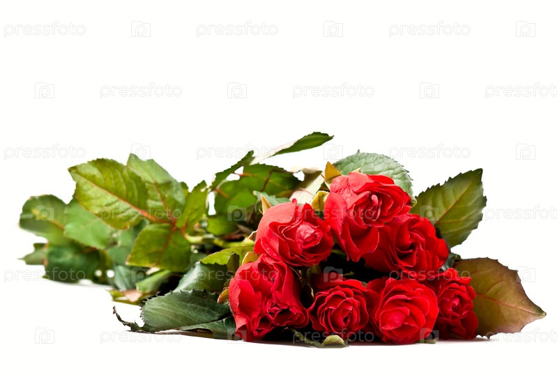 Букет красных роз на белом фоне