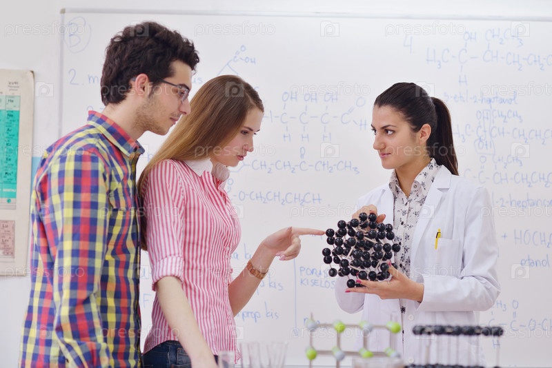Студенты в классе химии
