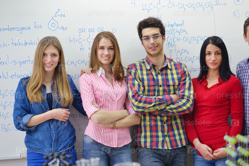 Студенты в классе химии