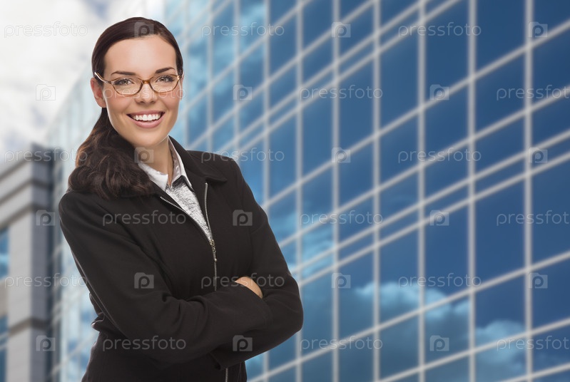 Женщина перед деловым центром