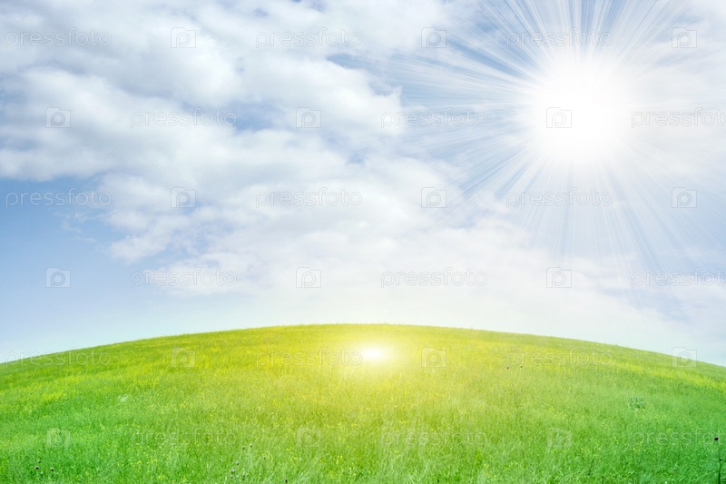 Летнее зеленое поле под голубым небом