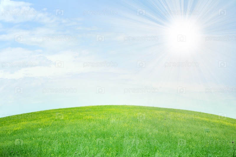 Летнее зеленое поле под голубым небом