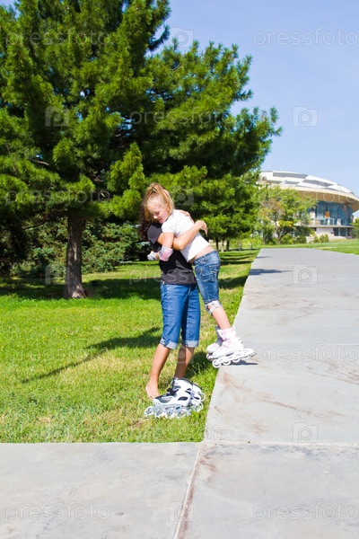 Мать и дочь на роликовых коньках