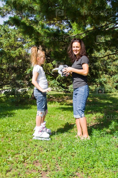 Мать и дочь на роликовых коньках