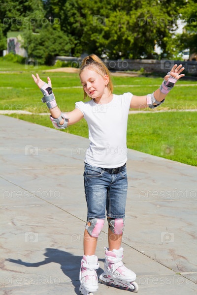 Симпатичная девочка на роликовых коньках