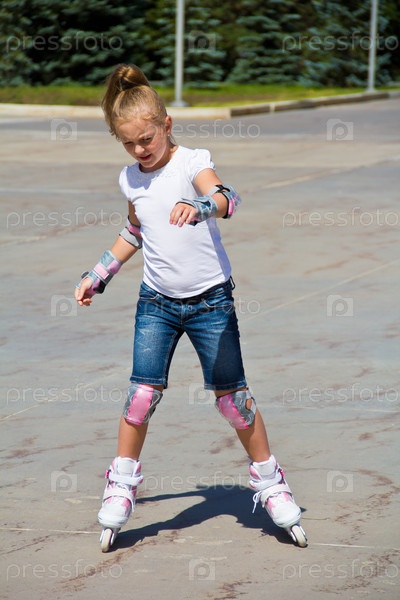 Симпатичная девочка на роликовых коньках