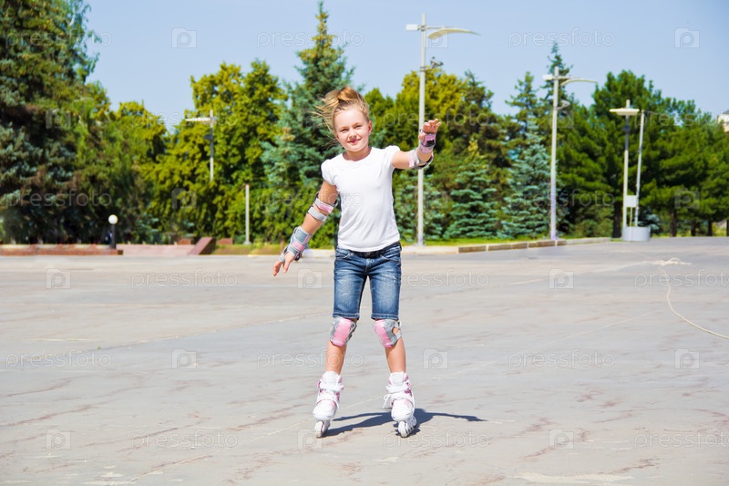 Симпатичная девочка на роликовых коньках