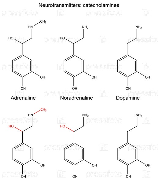 Молекула и формула нейротрансмиттеров (катехоламины)
