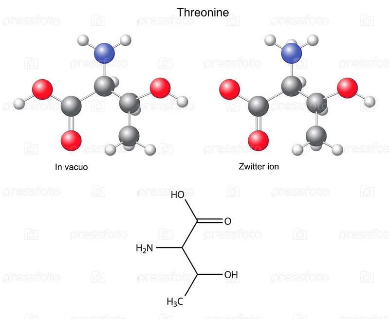 Треонин (Thr) - химическая формула и модель