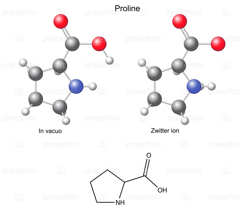 Пролин (Pro) - химическая формула и модель