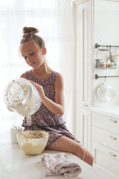 Девочка готовит еду на кухне