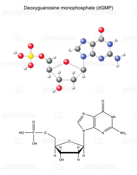 Химическая формула и модель дезоксицитидина монофосфата
