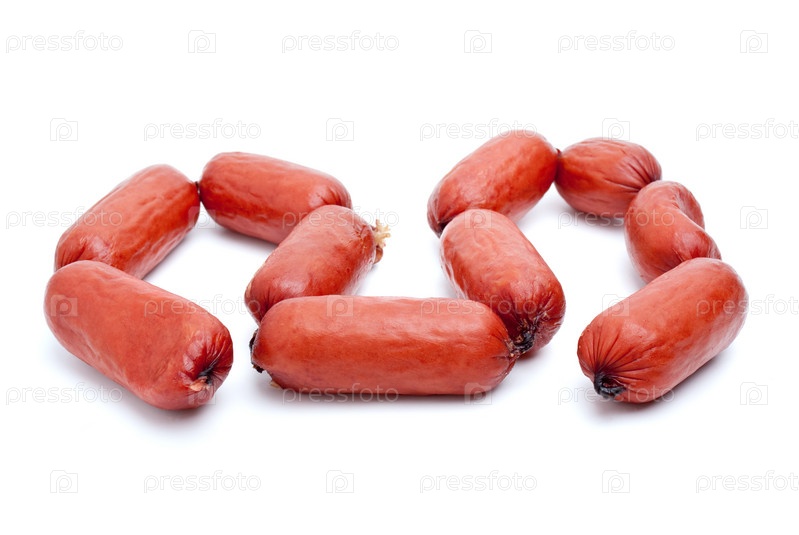 Баварские колбаски на белом фоне