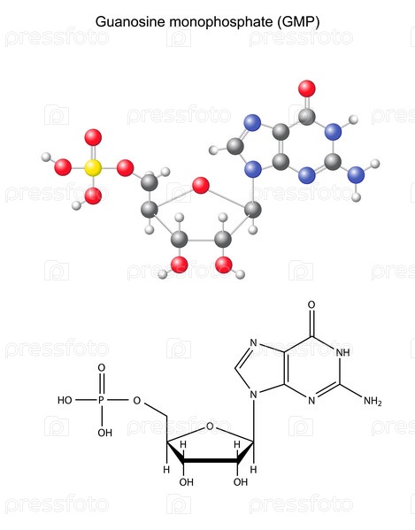 Структурная формула и модель гуанозинмонофосфата