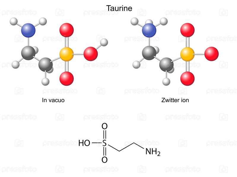 Таурин - химическая формула и модель