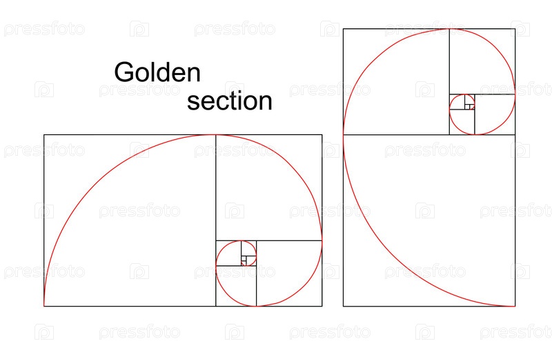 Иллюстрация двойной золотой спирали (секции, соотношения, пропорции)