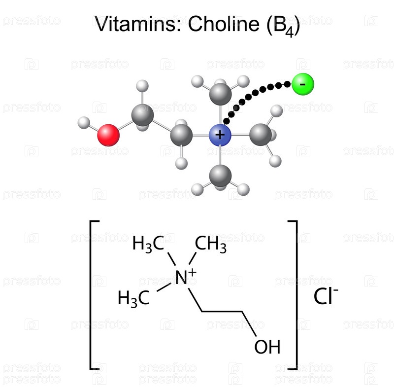 Структурная формула и модель витамина холин - b4