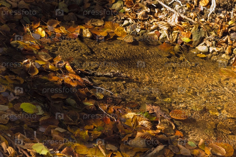 Ручей среди опавших листьев