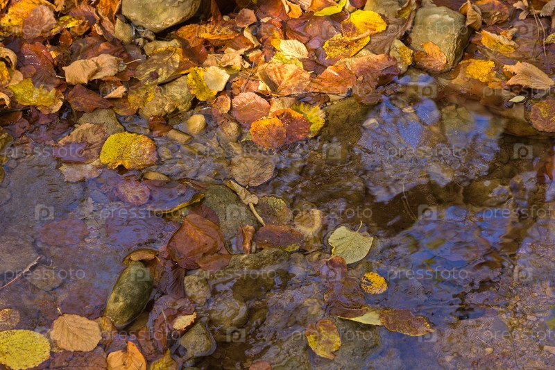 Ручей среди опавших листьев