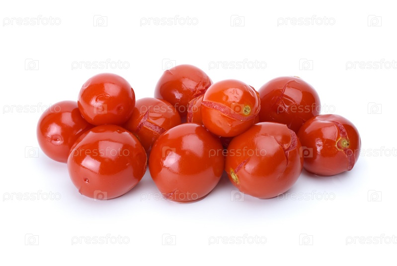 Несколько маринованных помидоров на белом фоне