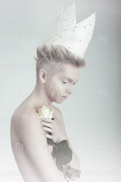 Молодой мужчина в бумажной короне с цветами