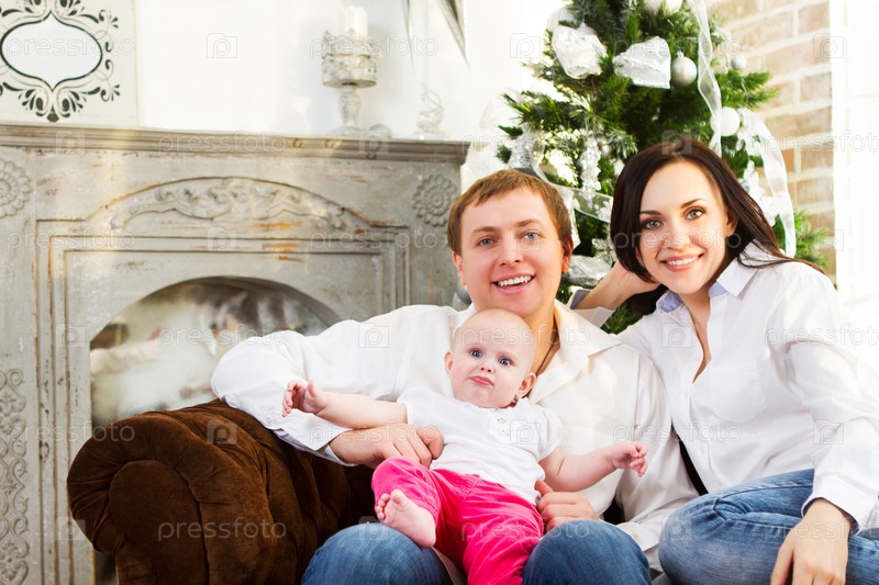 Семья возле елки
