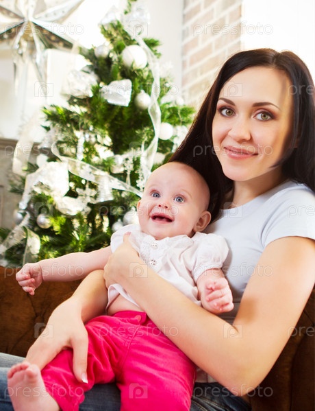 Мать с дочерью возле елки