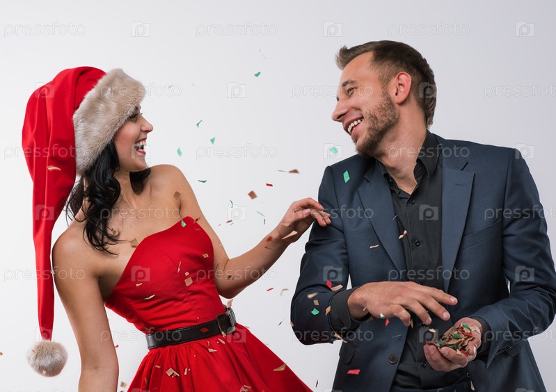 Мужчина и женщина празднуют Рождество