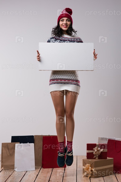 Женщина держит плакат