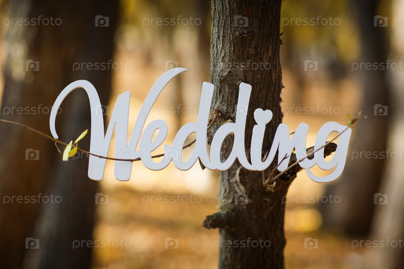 Слово "свадьба" на дереве