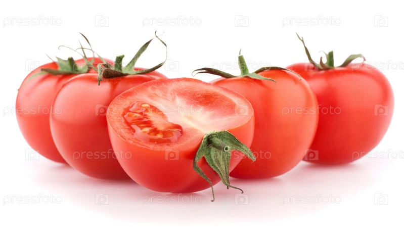 Спелые помидоры на белом фоне