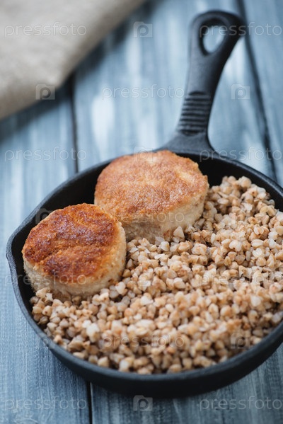 Котлеты и гречка в сковороде