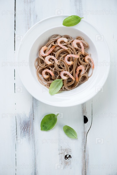 Гречневая лапша соба с креветками