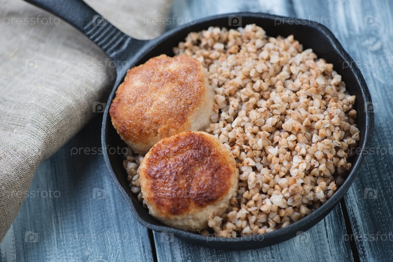Котлеты и гречка в сковороде