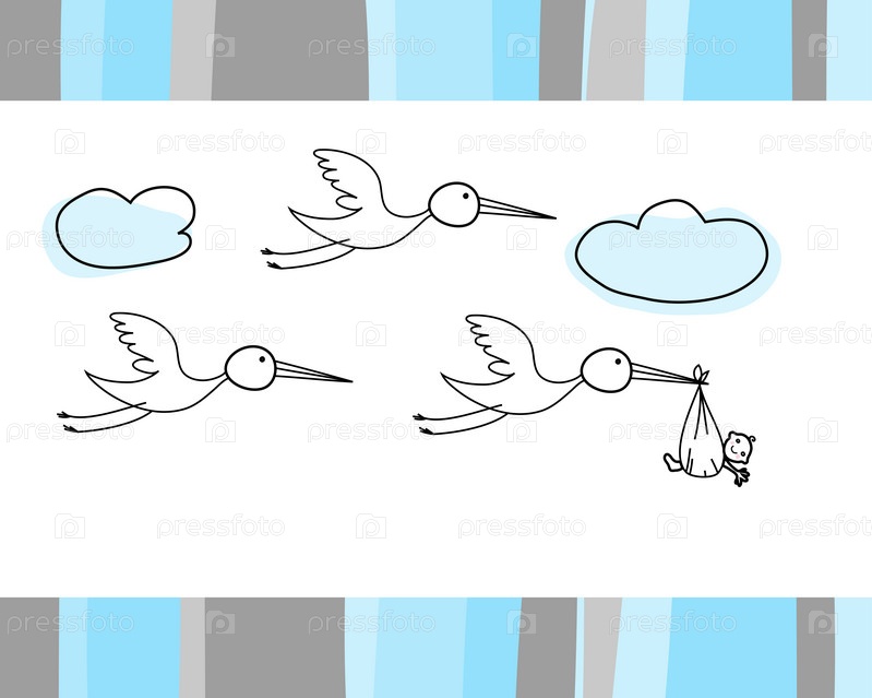 Аисты с детишками в полосатой рамке