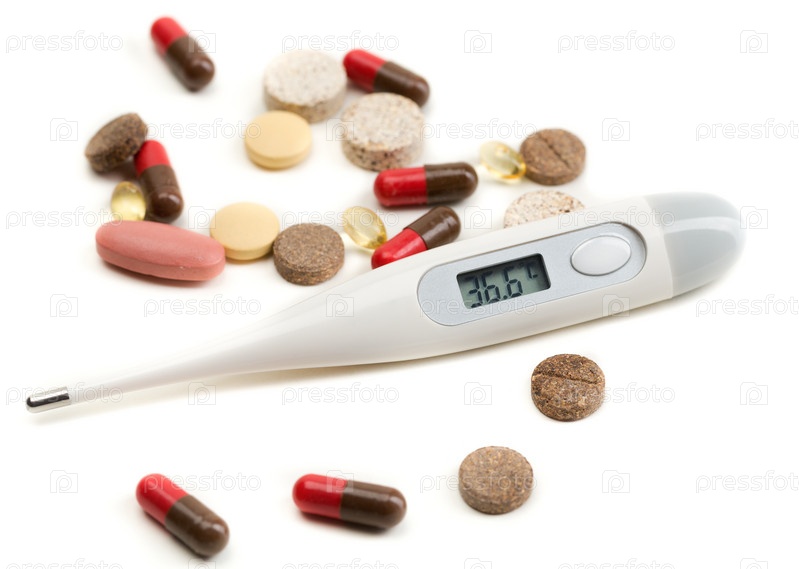 Электронный термометр и таблетки