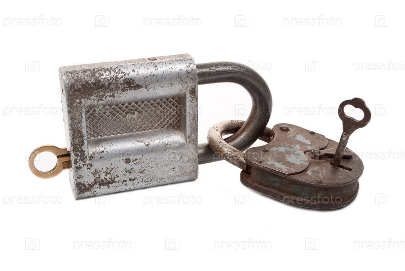 Два замка с ключами на белом фоне