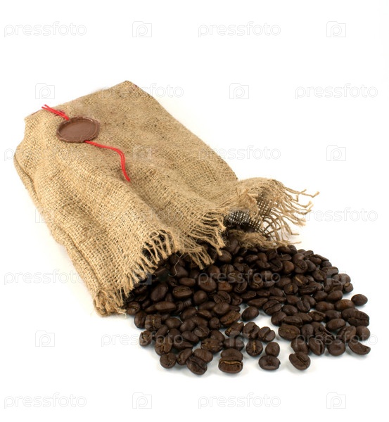 Burlap bag tagged sealing wax with coffee bean - герметический воск с кофейным зерном