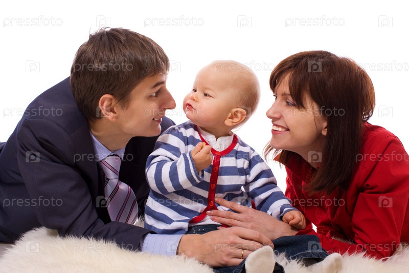 Счастливая семья на белом фоне