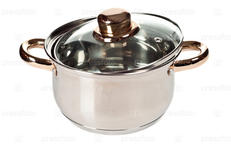 Нержавеющая кастрюля на белом фоне