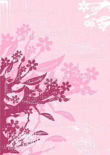 Цветочный гранджный фон с деревьями и цветами