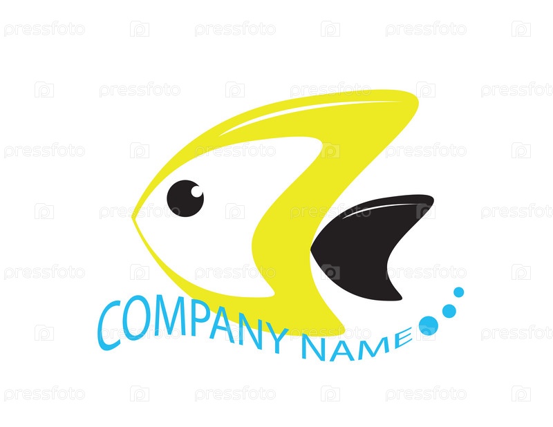Желтая рыбка на белом фоне с местом для названия компании