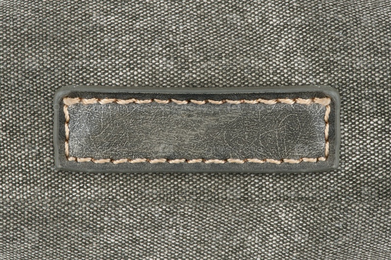 Кожаный ярлык на серой ткани