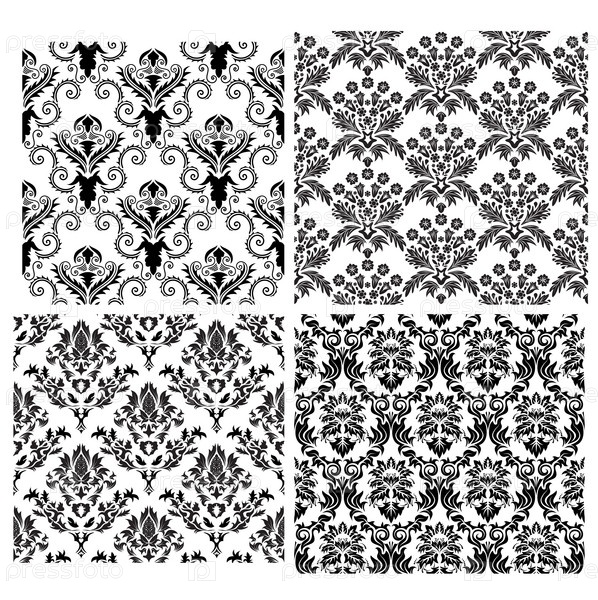 Четыре вида дамасского узора на белом фоне, иллюстрация