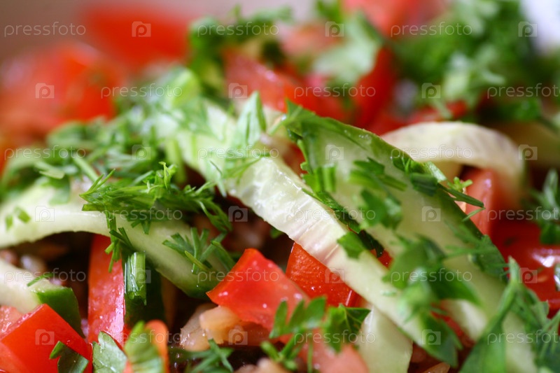 Салат из свежих овощей с перцем и помидорами, крупным планом